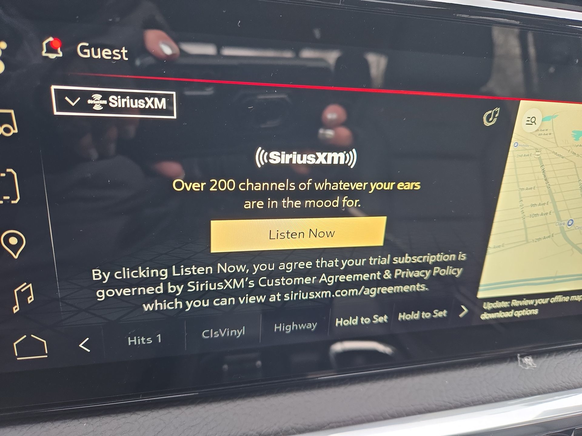 - With your trial subscription, new GM vehicles equipped with SiriusXM with 360L advance in-car technology will bring you closer to your favorite stars, artists, creators, hosts and athletes1